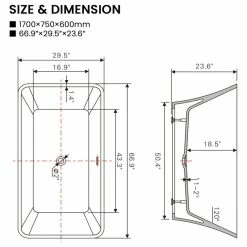 - Dimensions: W 66.9″ x D 29.5″ x H 23.6″