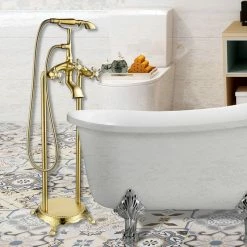 This freestanding bathtub faucet will provide a elegant upgrade to your bathroom.