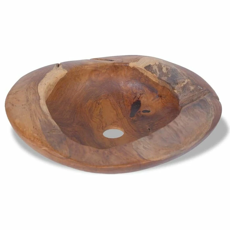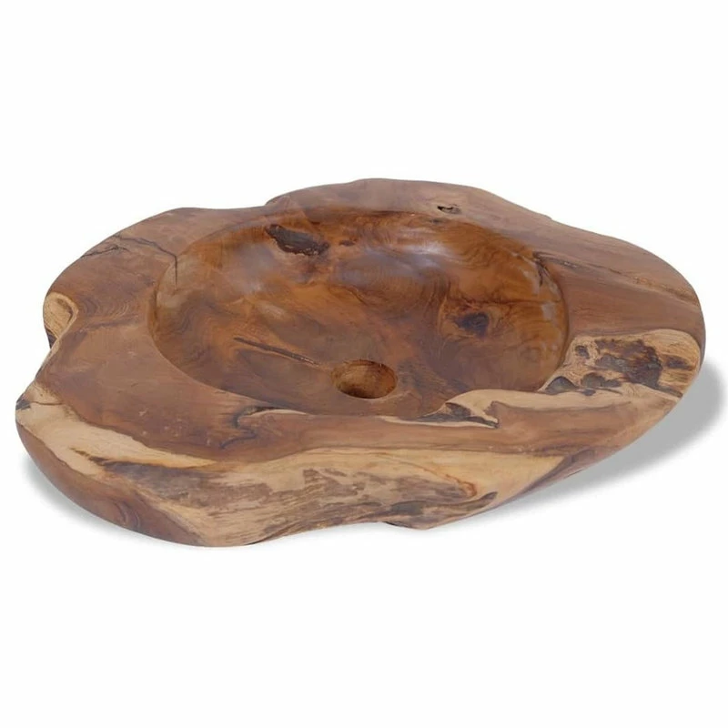 This unique wash basin, made of solid teak with a water-repellant finish, exudes a rustic charm and is a real eye-catcher in your bathroom or washroom. It should be mounted above counter. This striking basin is not only a practical sink for everyday use, but also an adornment for your living space. It is fully handmade and the craftsmanship adds to its spectacular retro and natural style. It will definitely suit any interior style. In addition, the basin is very easy to clean. Important note: As wood is a natural product, the colors, grain patterns and shapes vary from piece to piece, making each of our wash basins unique and different from the next; the delivery is random.