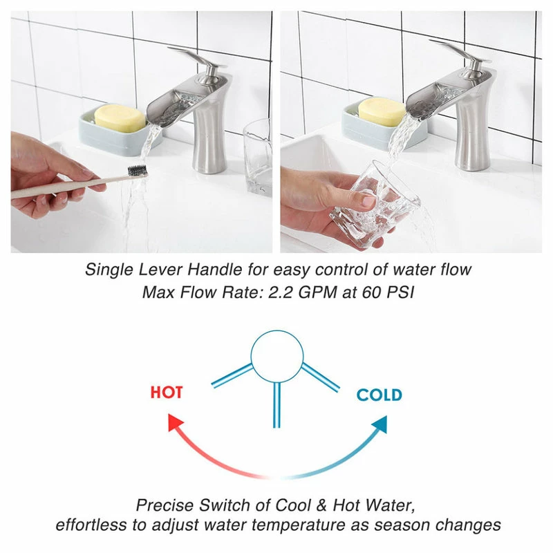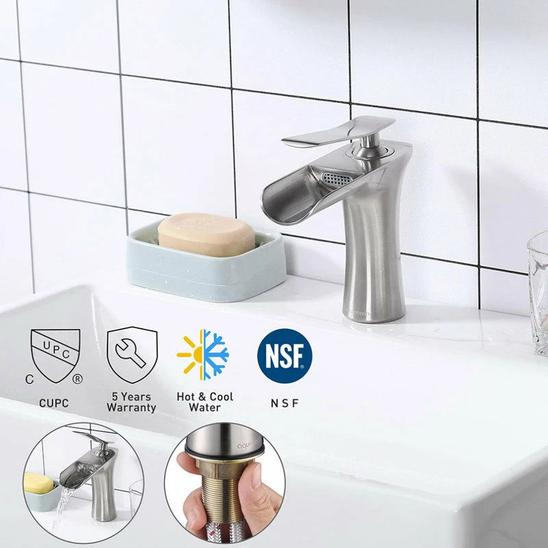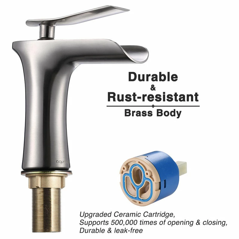- Aquaterior Simple & stylish round body faucet with waterfall style spout, provides a clear laminar stream for showing your good taste