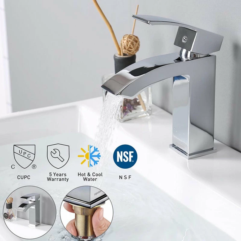 - Aquaterior® Simple Designed Single-hole Stylish Square Faucet with parabolic look, easy to maintain as well as creating a clutter-free bathroom atmosphere