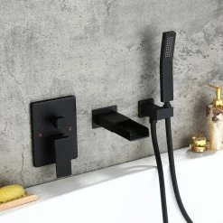 Best deal ๐ Homary Waterfall Wall-Mount Bathtub Filler Faucet & Handshower, Black ๐ฏ